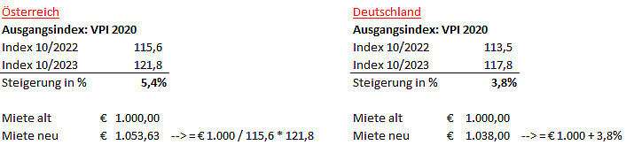 Im Mietvertrag ist üblicherweise eine Wertsicherungsklausel enthalten. Es wird der entsprechende Verbraucherpreisindex (VPI), sowie die Ausgangsbasis angeführt. Ebenfalls wird der Vergleichszeitraum angegeben (z.B. Oktober des Vorjahres bis Oktober des laufenden Jahres). Der neueste VPI in Österreich ist der VPI 2020. Die früheren VPIs sind mit dem VPI 2020 verkettet. In Deutschland wurde der VPI 2015 vom VPI 2020 abgelöst.