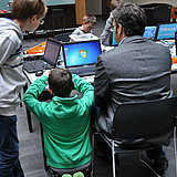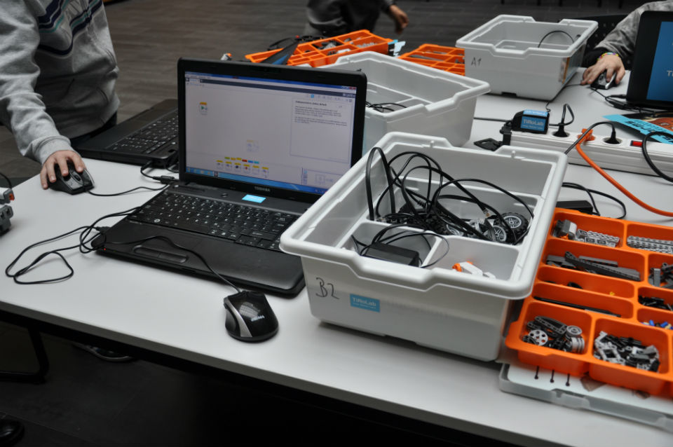 In den Workshops haben die TeilnehmerInnen jeweils zu zweit einen Roboter gebaut und programmiert. Für je 2 TeilnehmerInnen stand jeweils ein Roboterbaukasten und ein Laptop zur Verfügung.