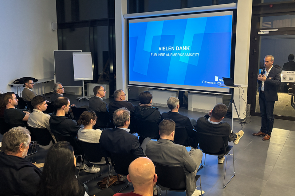 Im zweiten Impuls gab Bürgermeister Dirk Bastin, Leiter des Dezernates III, gemeinsam mit seinem Team Einblicke in das Digitale Baudezernat der Stadt Ravensburg. Das Beispiel macht sichtbar, wie moderne Verwaltungsstrukturen entstehen, wenn digitale Prozesse, Serviceorientierung und interdisziplinäre Zusammenarbeit ineinandergreifen.