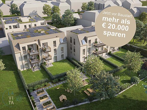 In zentraler Lage, mit sonniger Süd-West Ausrichtung, entsteht das Wohnensemble LAVITA. Drei Wohnhäuser mit 22 hochwertigen Eigentumswohnungen bieten vielfältige Wohntypologien - ob großzügige Familienwohnungen, kompakte Singlewohnungen, komfortable Wohnungen für den Ruhestand oder moderne Gemeinschafts- und Paarwohnungen. Die 2- bis 5-Zimmer Wohnungen mit eigener Freifläche (Garten, Balkon, Terrasse) schaffen den Raum für Ihr individuelles LAVITA.