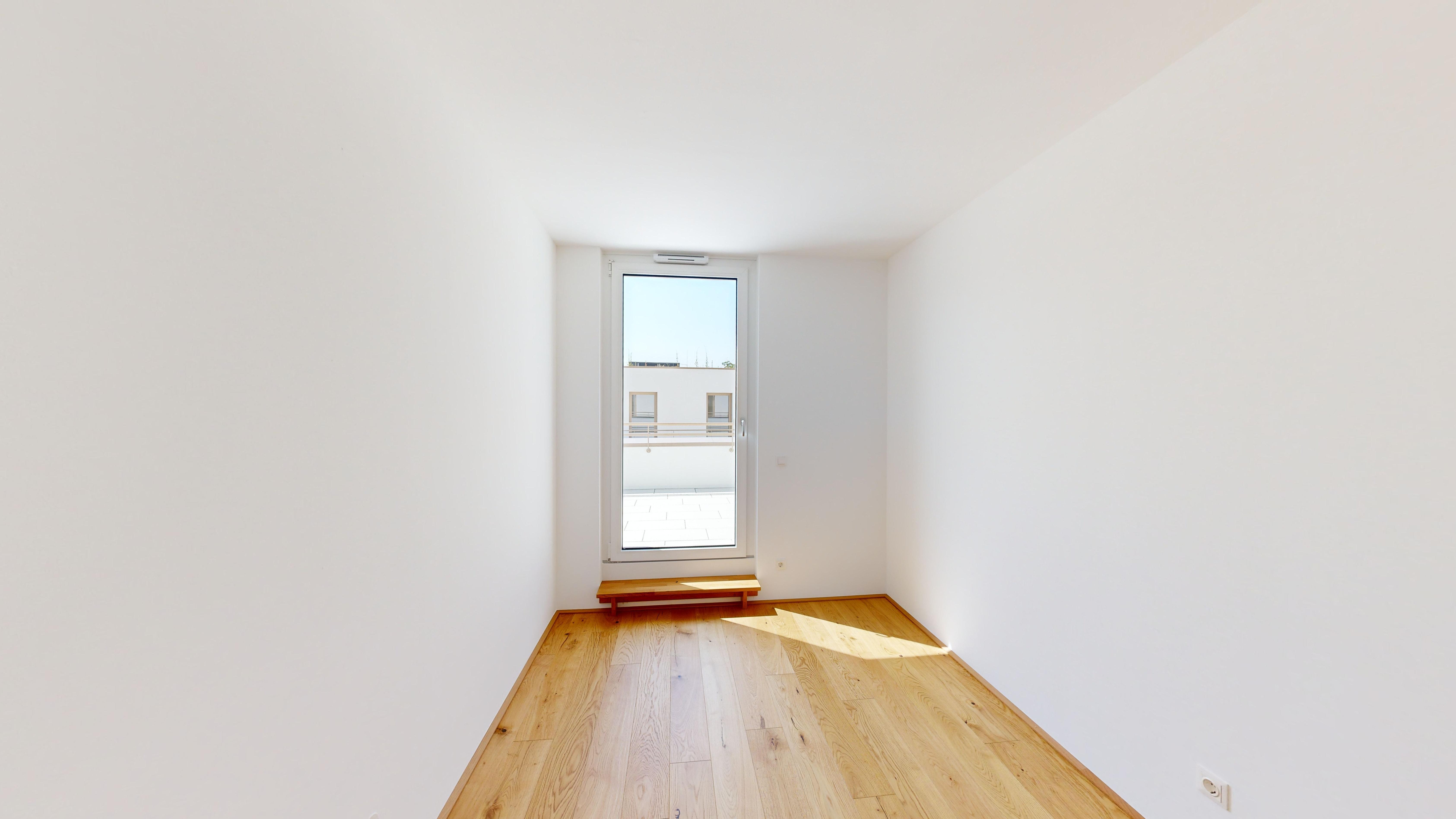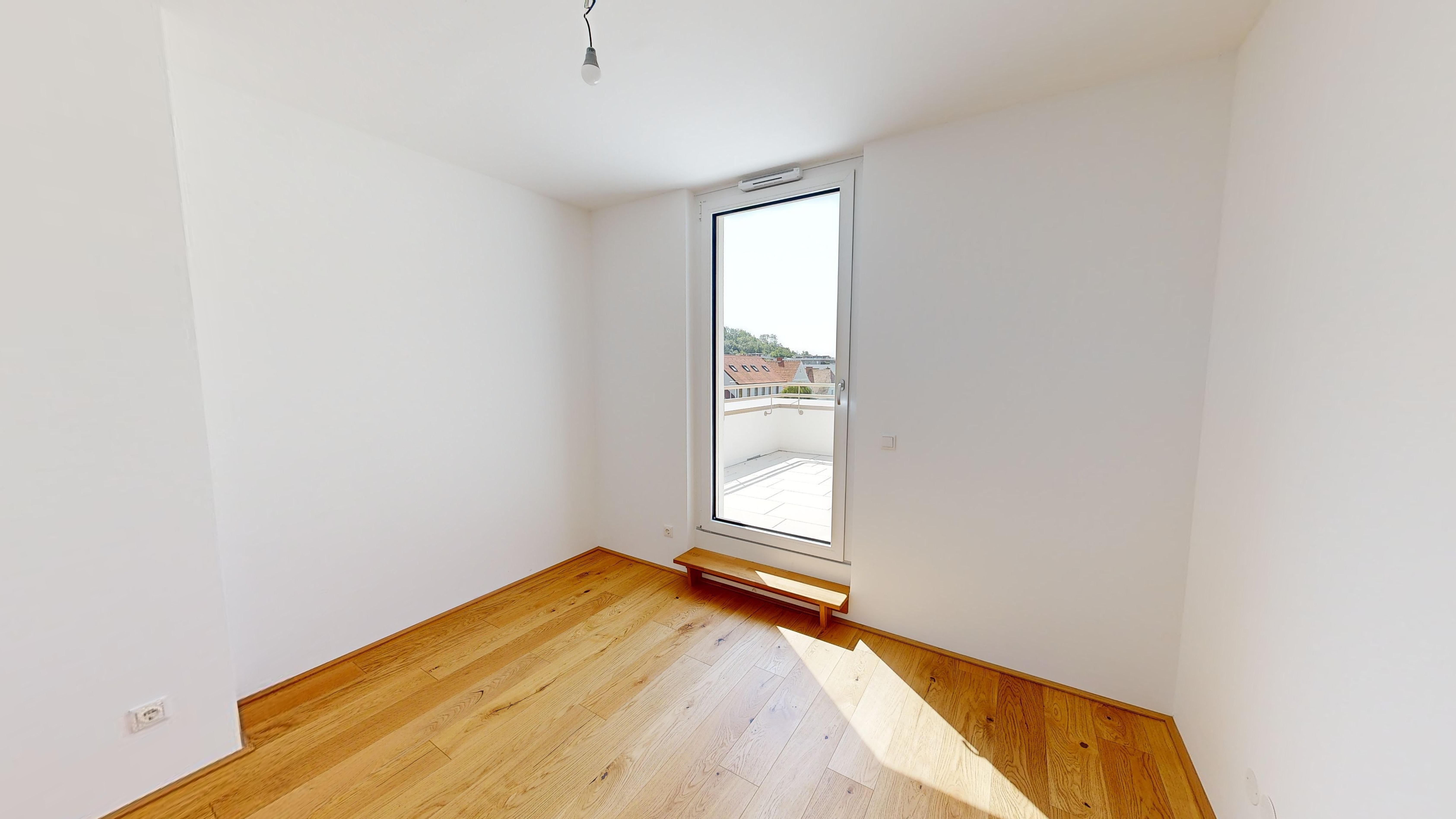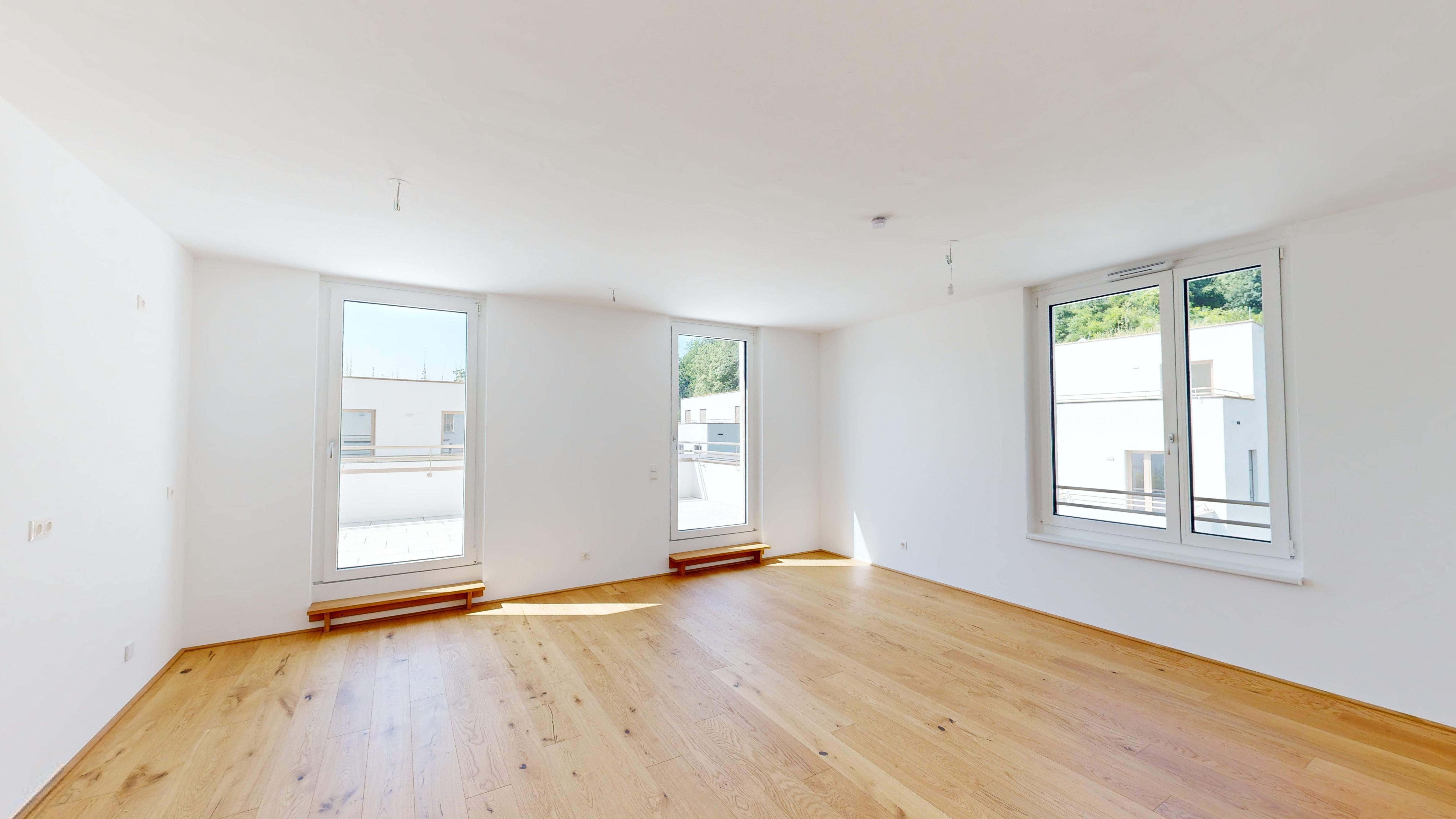 Die freundliche 4-Zimmer- Wohnung Top 10 befindet sich im Haus 75c und überzeugt mit intelligentem Grundriss und großzügiger Dachterrasse in Südlage. Der helle, einladende Wohn- und Essbereich sowie zwei Schlafzimmer bieten direkten Zugang auf die Terrasse. Das dritte Schlaf- bzw. Arbeitszimmer ist neben der Wohnküche situiert. Das Badezimmer mit Wanne und WC sind getrennt; ein großzügiger Vorraum sowie ein Abstellraum bieten zusätzlichen Stauraum. In der Wohnung sind ein hochwertiger Parkettboden sowie Feinsteinfliesen im Bad/WC verlegt. Für angenehmes Wohlfühlklima sorgt im Winter eine Fußbodenheizung. Heißen Sommertagen wirkt ein außenliegender, elektrisch gesteuerter Sonnenschutz sowie eine Raumtemperierung über die Fußbodenheizung entgegen (Abkühlung um 2-3 Grad mittels Wärmepumpen-System, ohne fossile Energieträger).