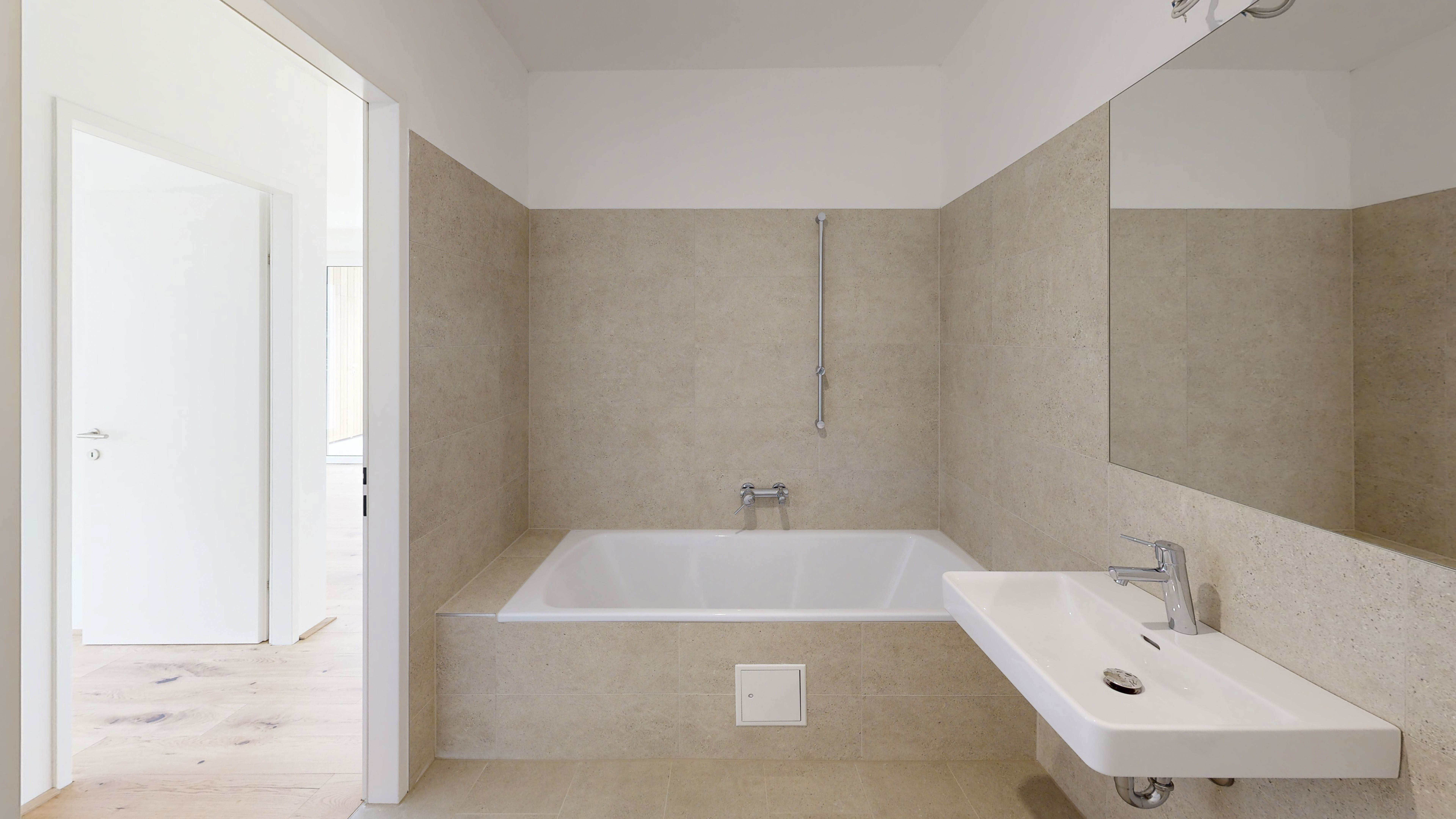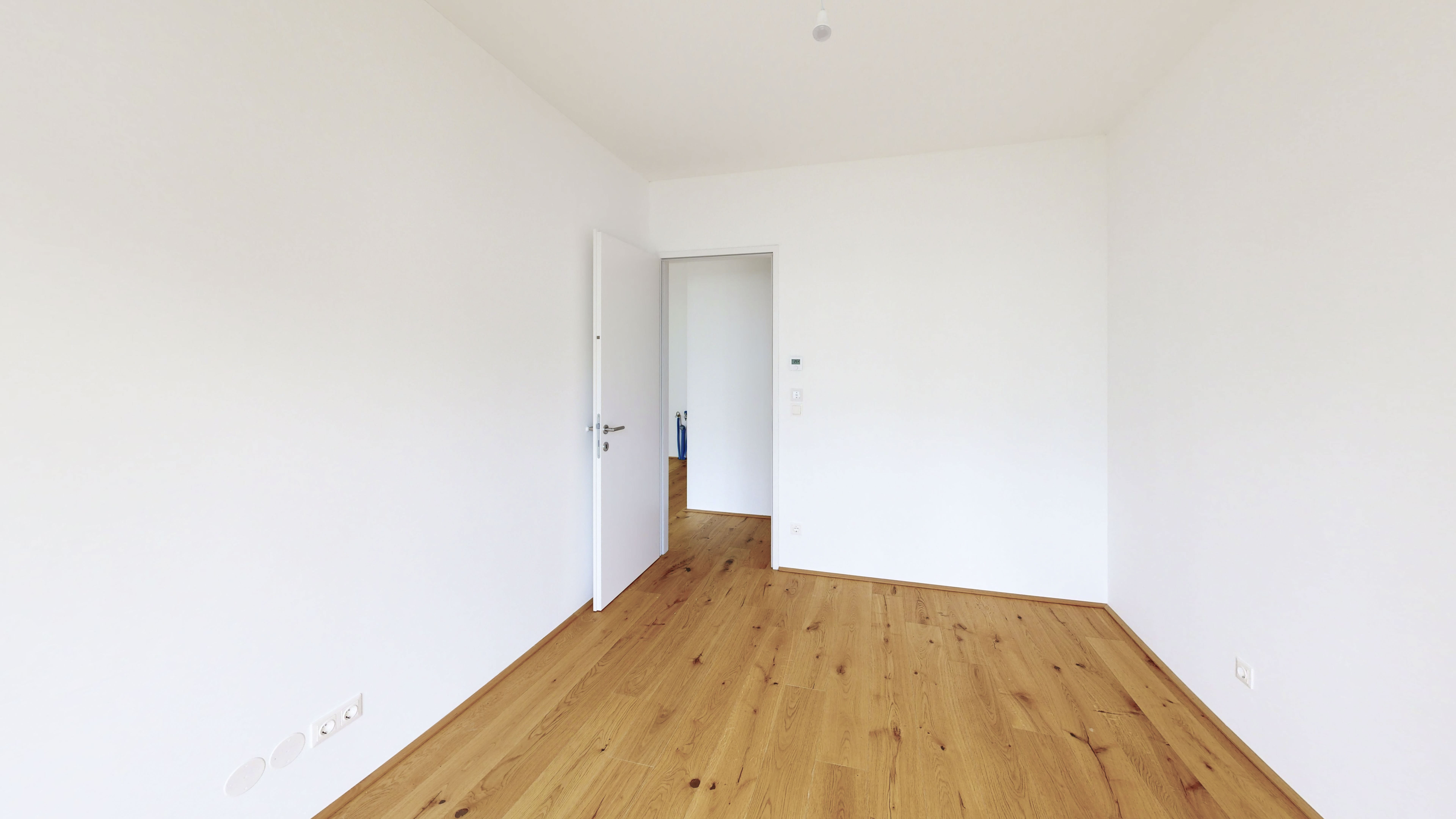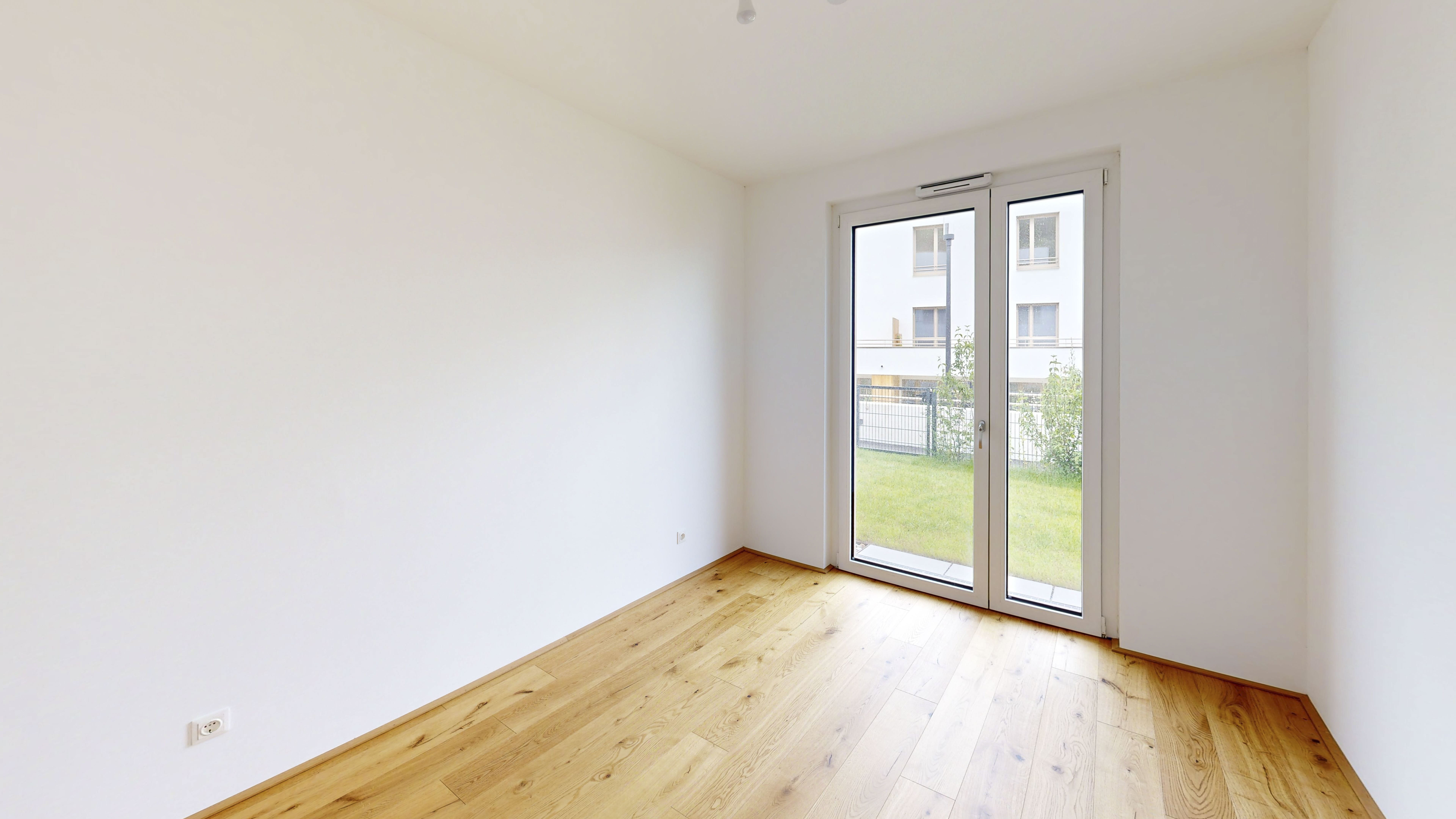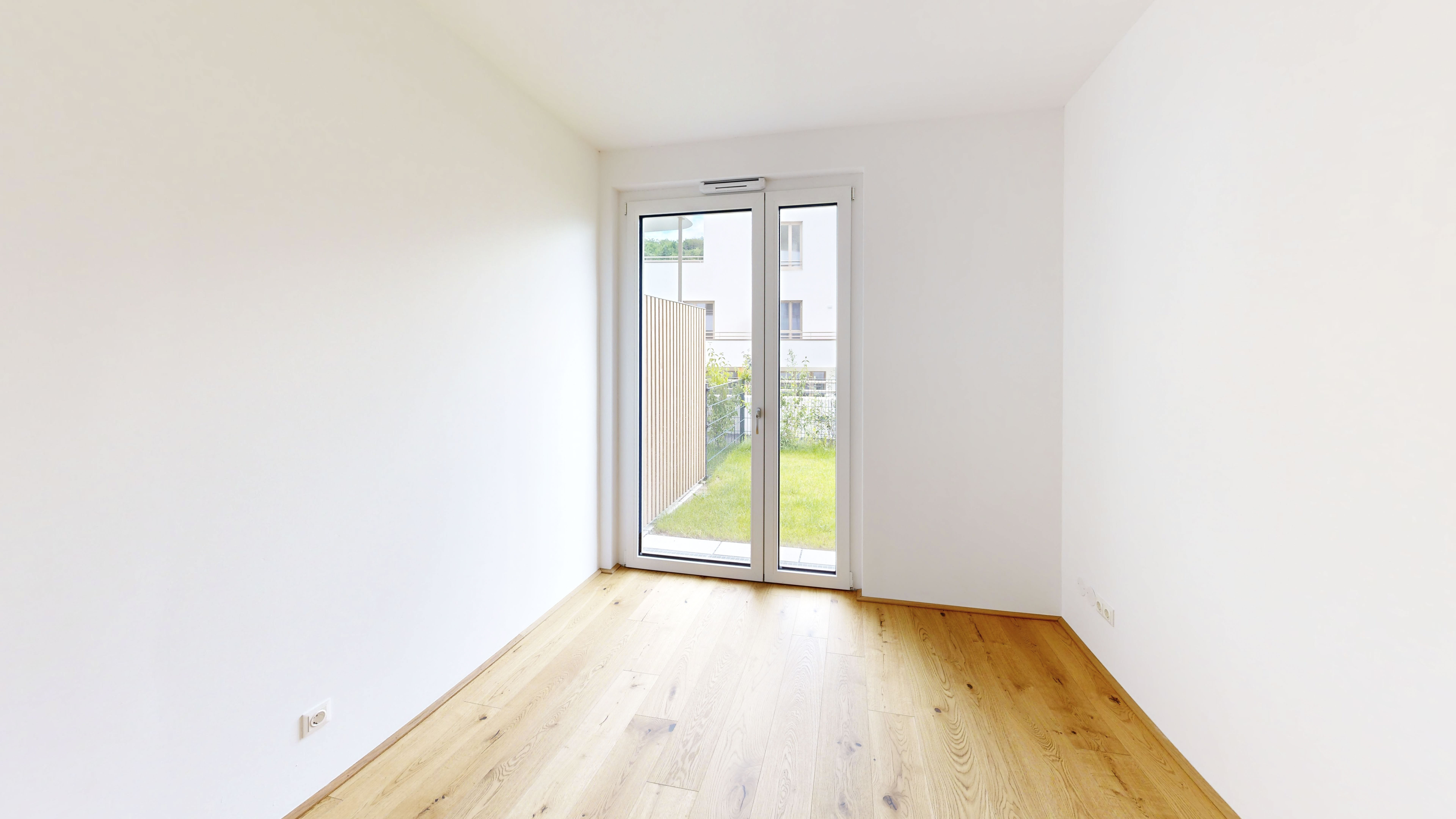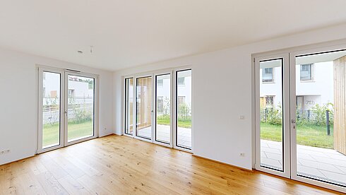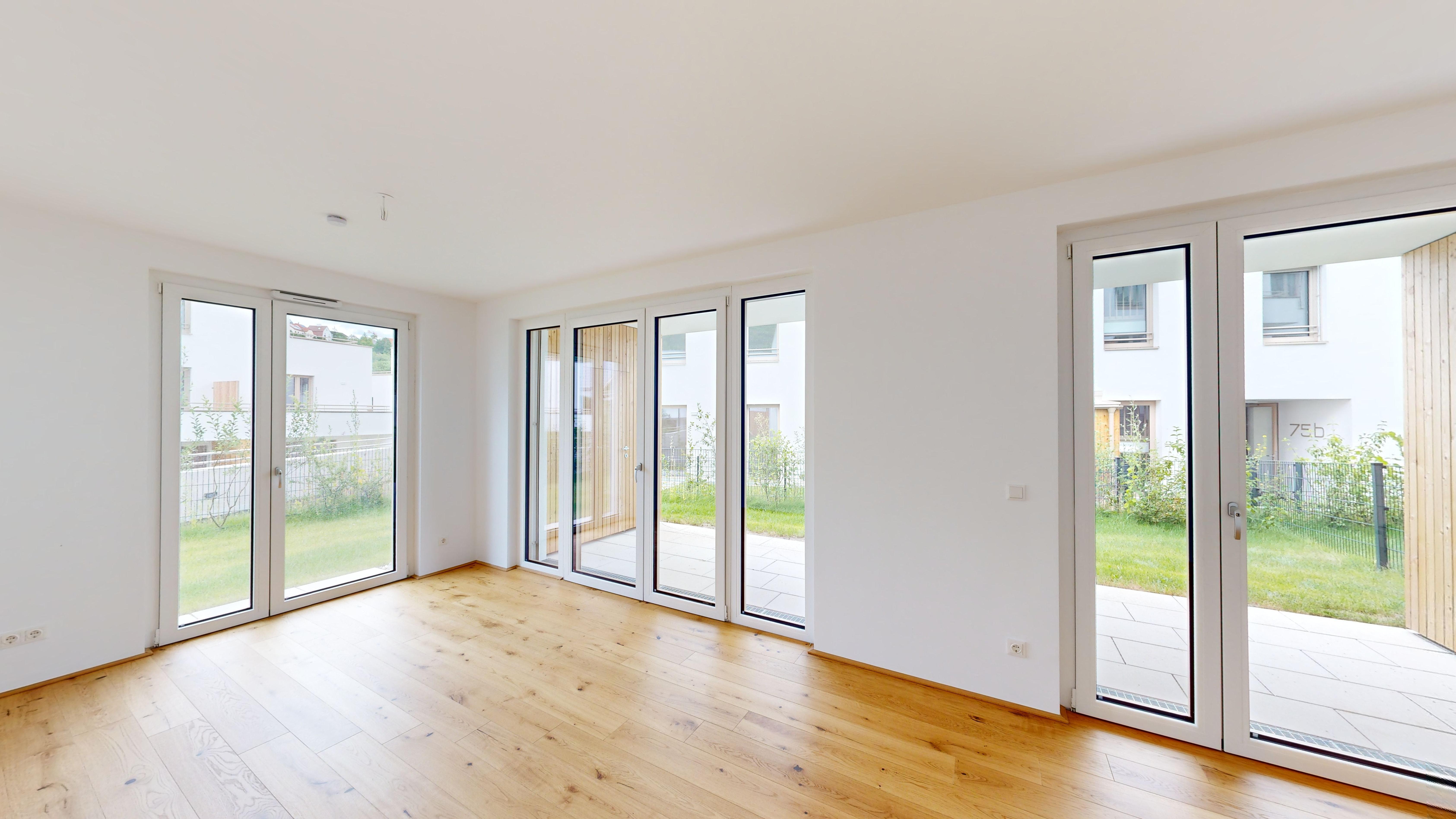 Die freundliche 3-Zimmer- Wohnung Top 02 befindet sich im Haus 75d und überzeugt mit intelligentem Grundriss und Süd-/Ost-Ausrichtung. Über den großzügigen Vorraum gelangt man in die offene Wohnküche, die direkt auf die südliche Loggia und weiter in den Garten führt. Die zwei Schlafzimmer bieten ebenfalls Grünblick in den eigenen Garten und sind nach Osten orientiert. In der Wohnung sind ein hochwertiger Parkettboden sowie Feinsteinfliesen im Bad/WC verlegt. Für angenehmes Wohlfühlklima sorgt im Winter eine Fußbodenheizung. Heißen Sommertagen wirkt ein außenliegender, elektrisch gesteuerter Sonnenschutz sowie eine Raumtemperierung über die Fußbodenheizung entgegen (Abkühlung um 2-3 Grad mittels Wärmepumpen-System, ohne fossile Energieträger).