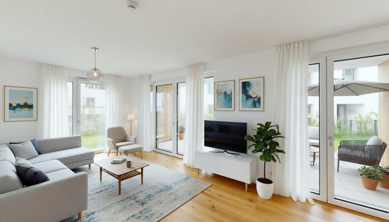 Alle Einrichtungsgegenstände laut Grundriss (inkl. Küche) dienen der Veranschaulichung und sind nicht Vertragsgegenstand. Die möblierten Bilder wurde mittels KI generiert und dienen der Visualisierung.