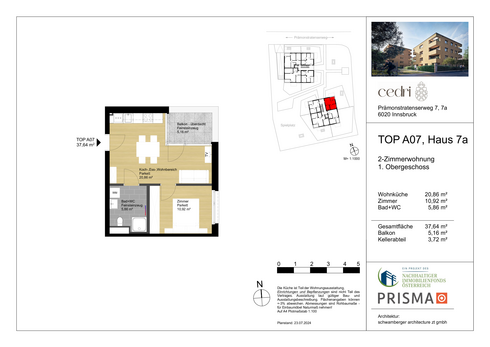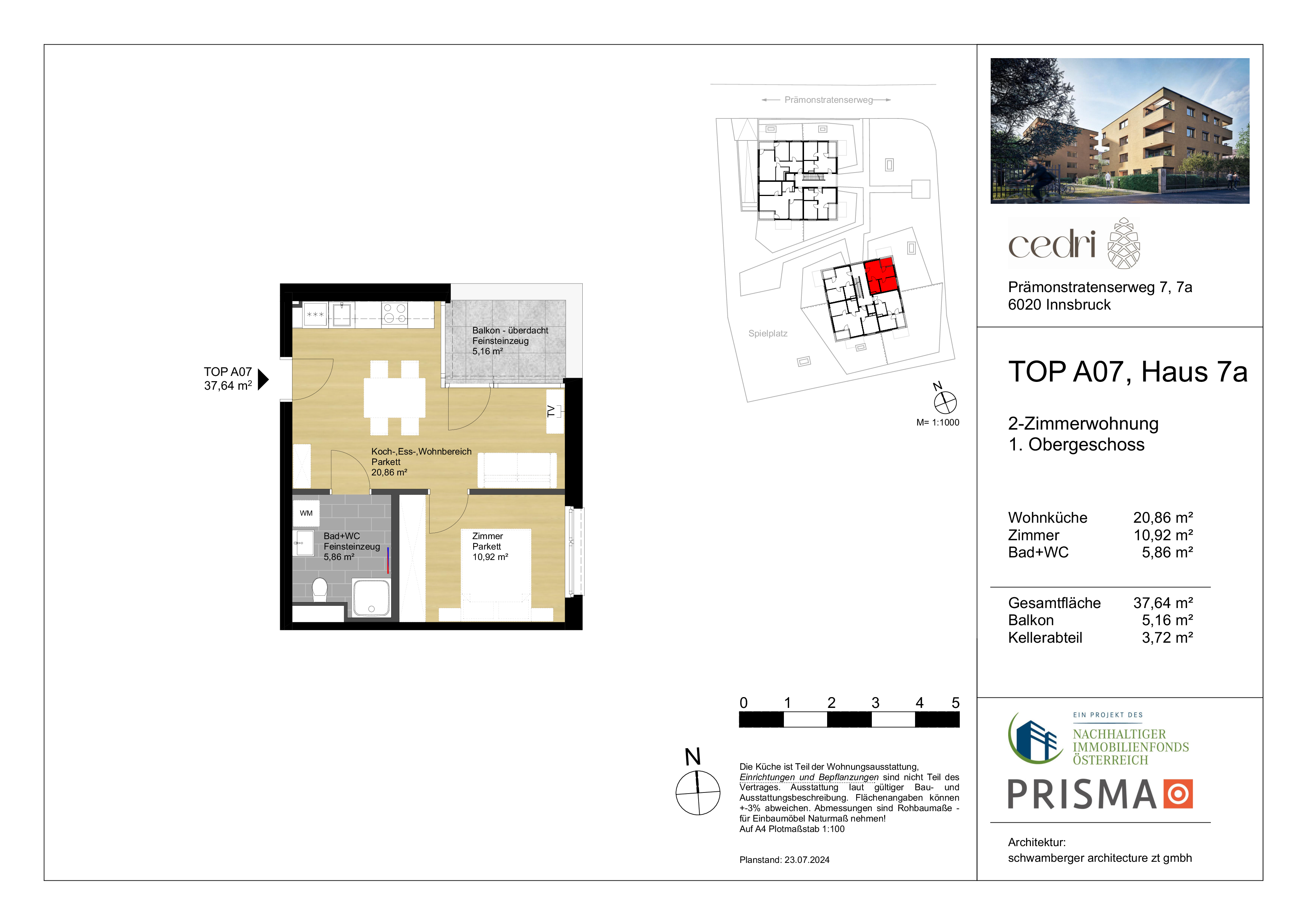 Erleben Sie modernen Komfort in dieser charmanten 2-Zimmer-Neubauwohnung im 1. Obergeschoss am Prämonstratenserweg 7a in Innsbruck! Mit einer Wohnfläche von 37,64 m² ist dieses Zuhause perfekt für Singles oder Paare, die urbanes Leben schätzen. Der 5,16 m² große Balkon lädt dazu ein, die frische Luft zu genießen und die Aussicht zu genießen. Diese ruhige Lage kombiniert die Vorteile des Stadtlebens mit einem einladenden Rückzugsort – ideal für Ihr neues Zuhause!