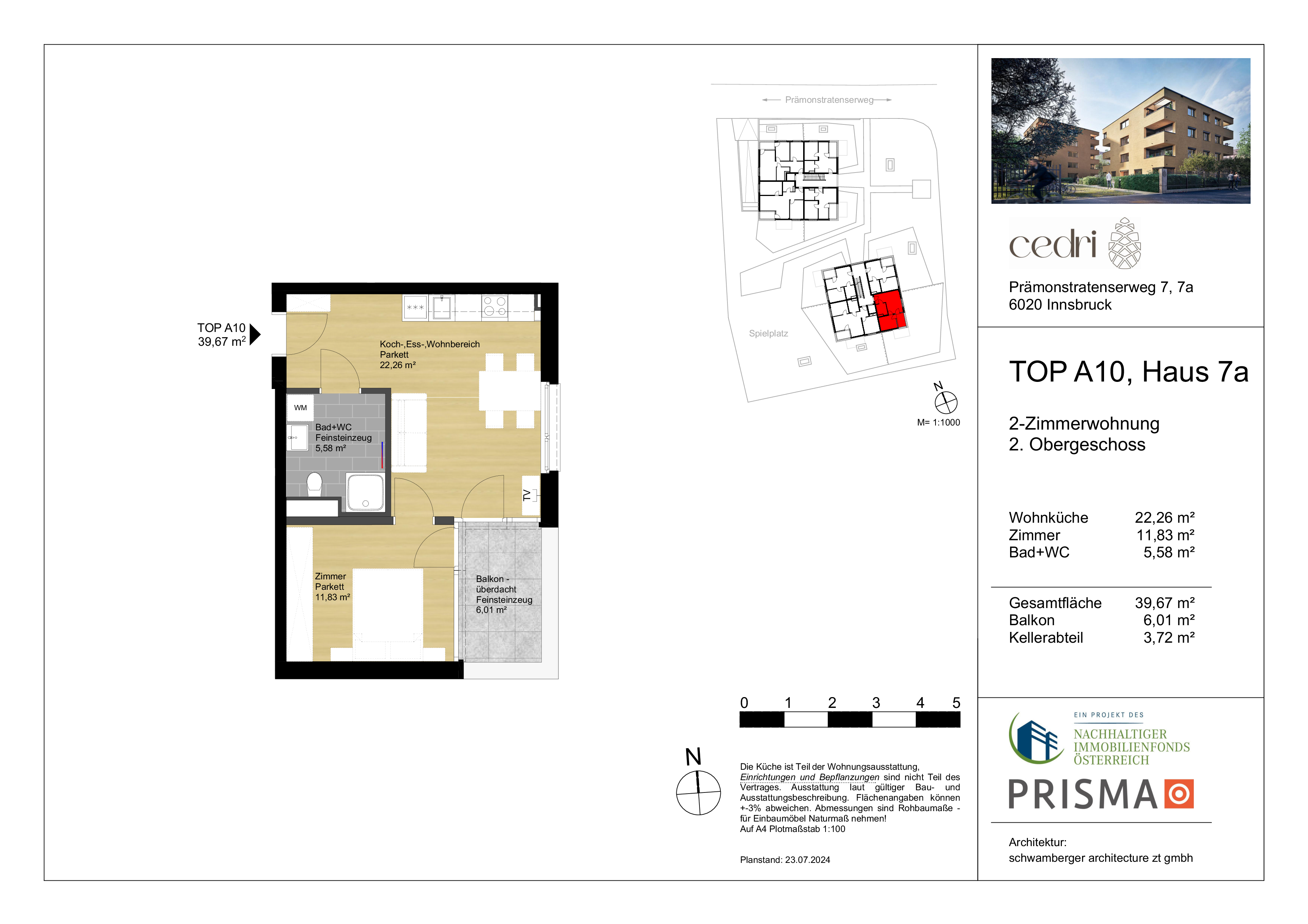 Tauchen Sie ein in diese stilvolle 2-Zimmer-Neubauwohnung im 2. Obergeschoss am Prämonstratenserweg 7a in Innsbruck! Mit einer Wohnfläche von 39,67 m² bietet dieses Zuhause eine perfekte Kombination aus Funktionalität und modernem Design. Der 6,01 m² große Balkon lädt dazu ein, die frische Luft zu genießen und entspannte Stunden im Freien zu verbringen. In einer ruhigen Lage finden Sie hier den idealen Rückzugsort, der gleichzeitig die Vorzüge des städtischen Lebens bietet – Ihr neues Zuhause erwartet Sie!
