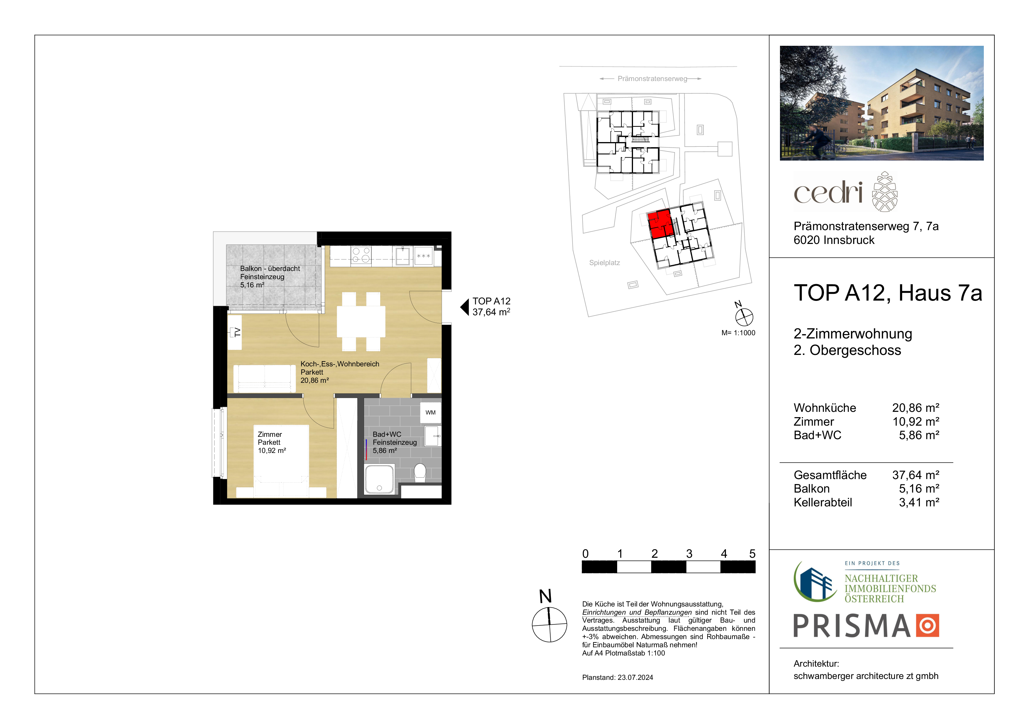 Erleben Sie modernen Wohnkomfort in dieser charmanten 2-Zimmer-Neubauwohnung im 2. Obergeschoss am Prämonstratenserweg 7a in Innsbruck! Mit einer durchdachten Wohnfläche von 37,64 m² ist diese Wohnung ideal für Singles oder Paare. Der 6,01 m² große Balkon lädt dazu ein, die frische Luft zu genießen und den Blick in die Umgebung zu schweifen zu lassen. Diese ruhige Lage bietet die perfekte Kombination aus städtischem Leben und einem gemütlichen Rückzugsort – Ihr neues Zuhause wartet auf Sie!