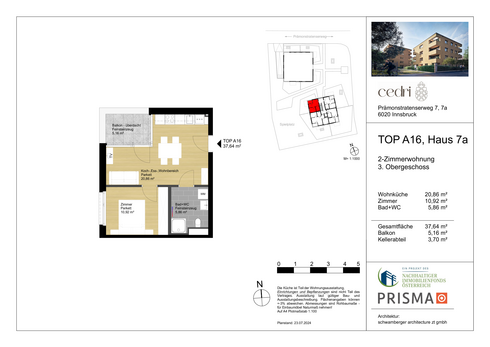 Willkommen in dieser charmanten 2-Zimmer-Neubauwohnung im 3. Obergeschoss am Prämonstratenserweg 7a in Innsbruck! Mit einer Wohnfläche von 37,64 m² bietet diese Wohnung eine ideale Kombination aus modernem Design und Gemütlichkeit. Der 5,16 m² große Balkon ist der perfekte Ort, um die frische Luft zu genießen und entspannte Momente im Freien zu verbringen. Diese ruhige Lage vereint die Vorzüge des städtischen Lebens mit einem einladenden Rückzugsort – Ihr neues Zuhause in Innsbruck erwartet Sie!